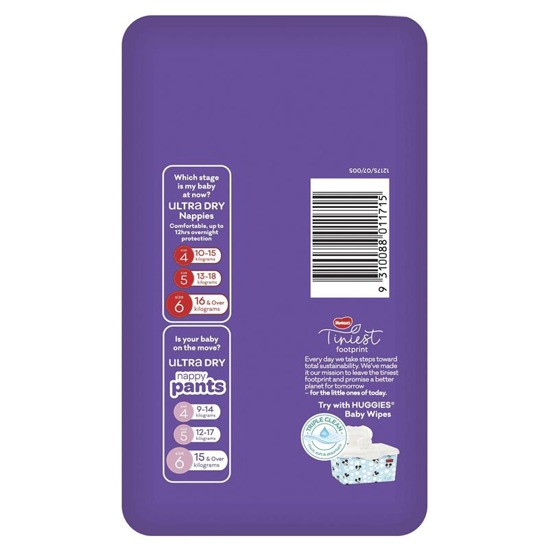 Huggies Ultra Dry Nappy Pants Size 6 15kg & Over Girl 24 Pack