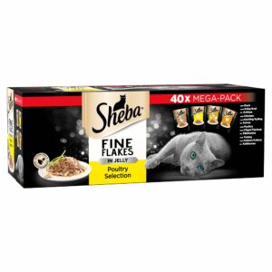 Sheba Fine Flakes Wet Cat Food Pouches Poultry Collection in Jelly Bulk Pack 40 x 85g